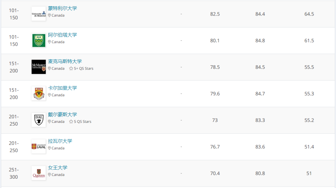 【2020 QS世界大学生物科学专业排名中加拿大大学部分节选】