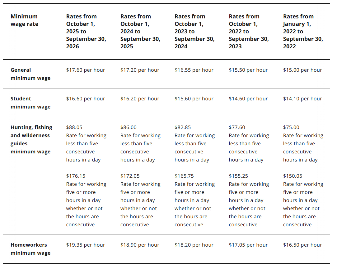 调整后,联邦最低工资($17.75)成为全国最高,安省以$17.60 位列第二。其他省份如阿尔伯塔、萨斯喀彻温等也计划在 2025 年跟进调薪,但具体幅度尚未公布。