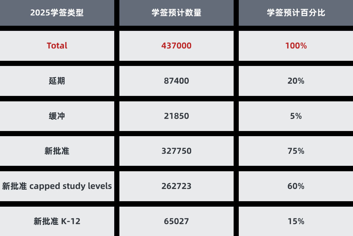 2025年的配额目标将分为三个类别:续签、缓冲和新的学习许可批准。